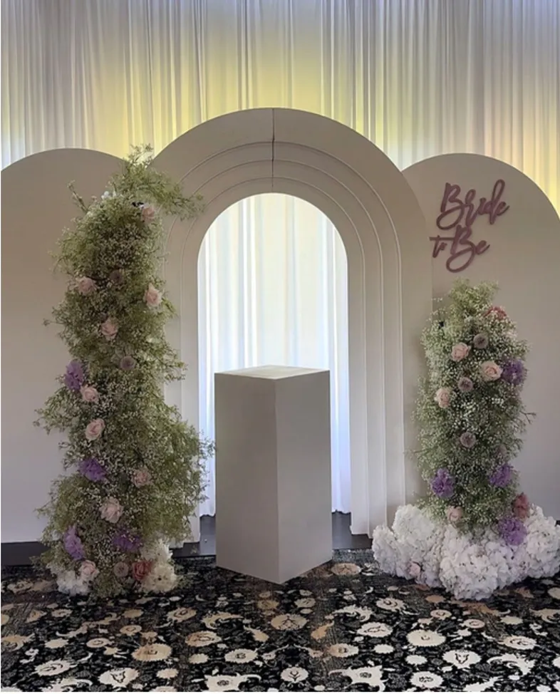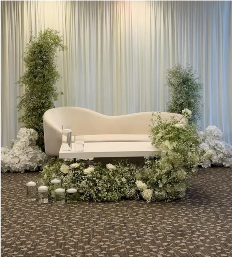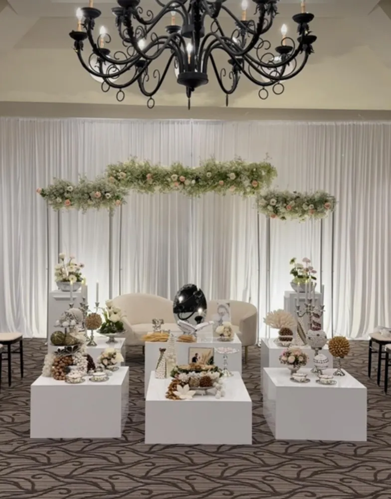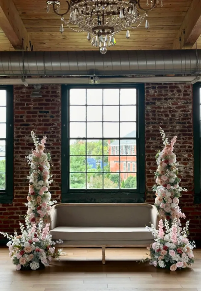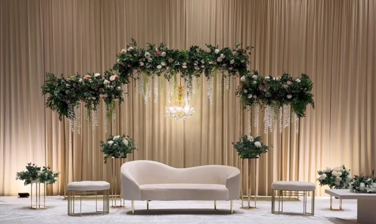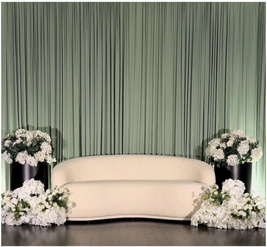 Transforming spaces through intentional visual narratives, bespoke floral arrangements, and architectural drapes.